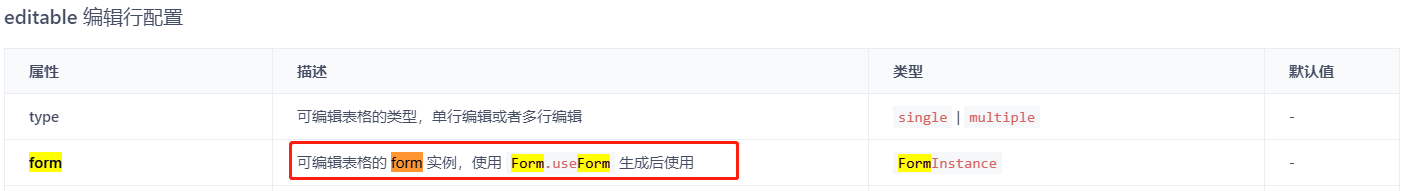注:EditableProTable默认是在单行保存时调用表单验证,如下图: