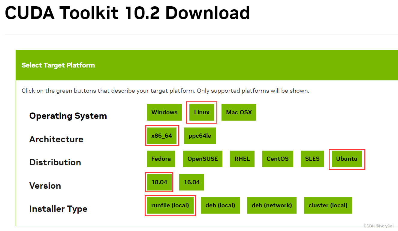 首先去官网下载需要的CUDA安装包(runfile格式)需要科学上网