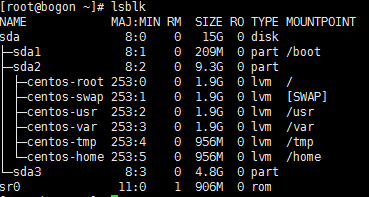 Centos7系统磁盘容量不足(10g),在vmware中增加到15g,仍需在centos中格式化磁盘。