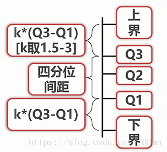如图上下界之间的为正常值,那么上下界以外的就是异常值了,由此可见,异常值的测定程度由K决定。