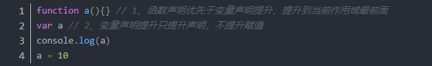 function a(){}这样的函数声明,会把函数声明提升到当前作用域的最前面,注意是最前面。