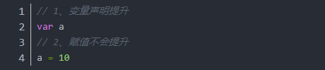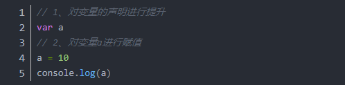 var a = 10;这样的变量声明,会被分解成两个独立的步骤: