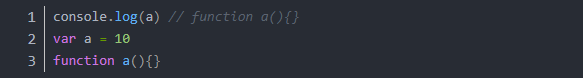 为什么打印10而不是function a() {}呢?这里就需要JavaScript预解析的机制了。