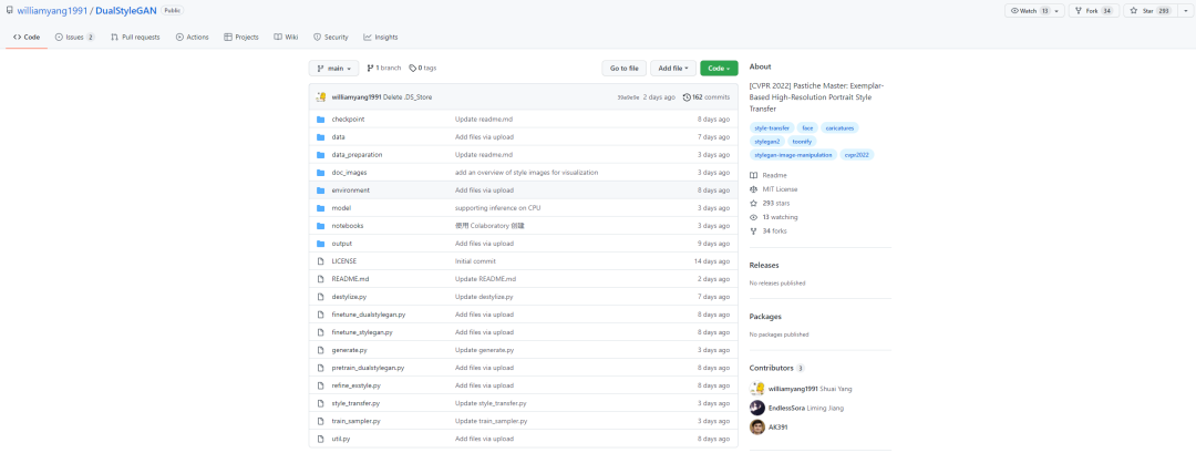 DualStyleGAN算法刚刚开源,已获得近300的star。