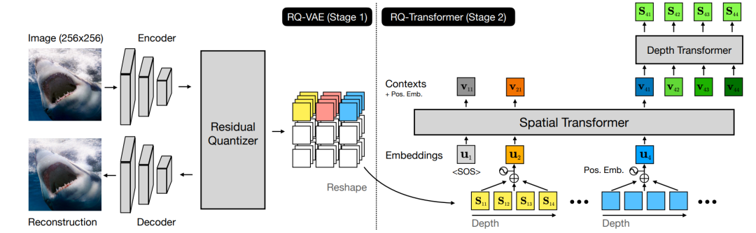 算法主要分为两个阶段:RQ-VAE 和 RQ-Transformer。