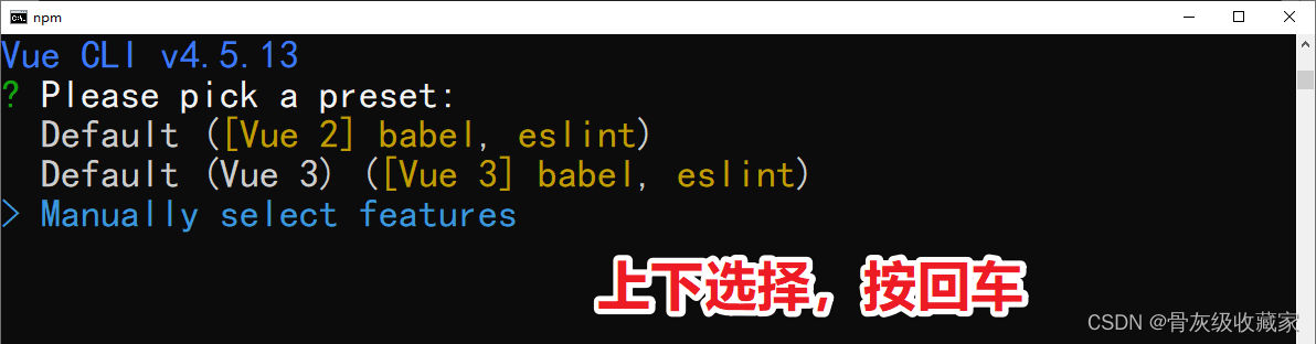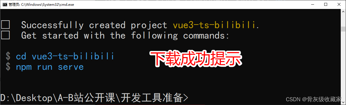 ?? 温馨提醒: 如果创建失败,需要提前安装 @vue/cli 脚手架工具,才能通过以上命令创建项目。 如何安装 @vue/cli 官方教程:https://cli.vuejs.org/zh/guide/installation.html