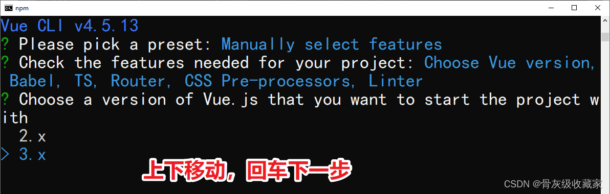 打开终端工具,输入 vue create 项目名称 创建 Vue3 + TS 项目