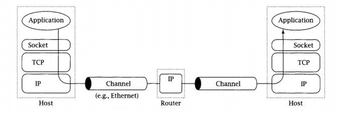 TCP将它的信息送到更高层的应用程序,例如Telnet的服务程序和客户程序。应用程序轮流将信息送回TCP层,TCP层便将它们向下传送到IP层,设备驱动程序和物理介质,最后到接收方。