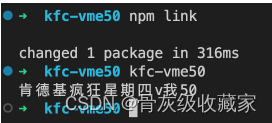 4.在根目录下执行npm link将项目链接到本地环境,就可以实现kfc-vme50命令全局调用