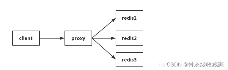 有些集群架构是下面这样的,Proxy可以是Twemproxy,是统一的入口。可以在Proxy层做收集上报,但是缺点很明显,并非所有的redis集群架构都有proxy。