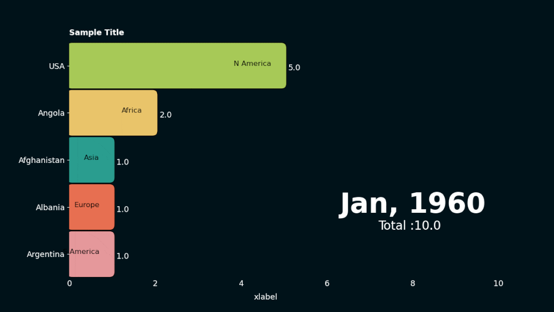 输入数据后,Pynimate将使用函数Barplot()来创建条形数据动画。