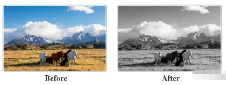 我们可以使用值 100% 将图像从彩色转换为黑白。当我们将此值设置为 0% 时,图像将保持不变。