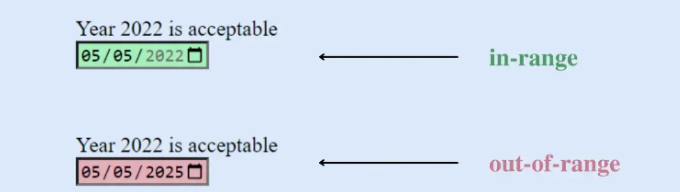 这些伪类用于在指定范围限制之内和之外设置输入样式。