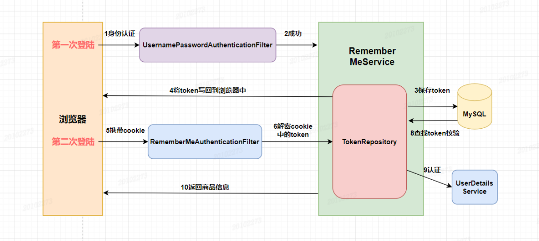 如果用户勾选了 “记住我” 选项,Spring Security 将在用户登录时创建一个持久的安全令牌,并将令牌存储在 cookie 中或者数据库中。当用户关闭浏览器并再次打开时,Spring Security 可以根据该令牌自动验证用户身份。