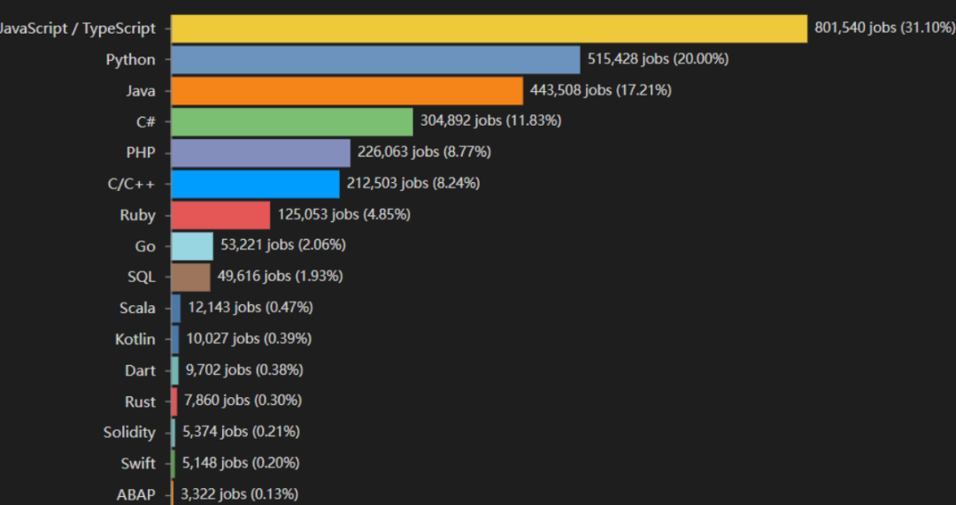devjobsscanner统计了全年需求量大的8种编程语言,基本上薪资很高的,也就是这几个方向了。