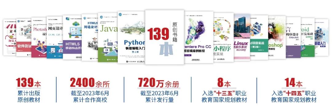 截至2023年6月,传智教育已自主出版数字化技术教材 139 本,累计发行 720 万余册,收获荣誉高达 59 项,其中有 14 本入选首批“十四五”职业教育国家规划教材, 8 本入选“十三五”职业教育国家规划教材,6 本入选“十四五”职业教育江苏省规划教材。