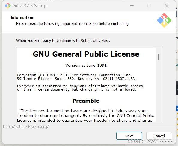 该界面介绍了GNU通用公共许可协议相关信息