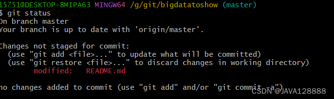 8.git status #查看当前仓库的状态