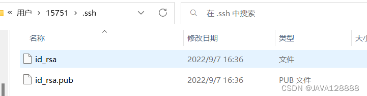 连敲三次回车键,在系统盘目录下,查看是否有.ssh文件夹生产并打开