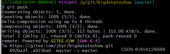6.git push #将本地代码更新到远程分支上