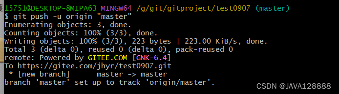 1.git push -u origin "master"