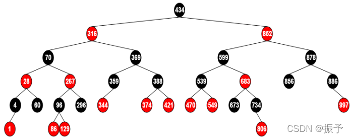 5、对于每个结点,该结点到其所有子孙结点的所有路径上包含相同数目的黑结点(相同黑高)