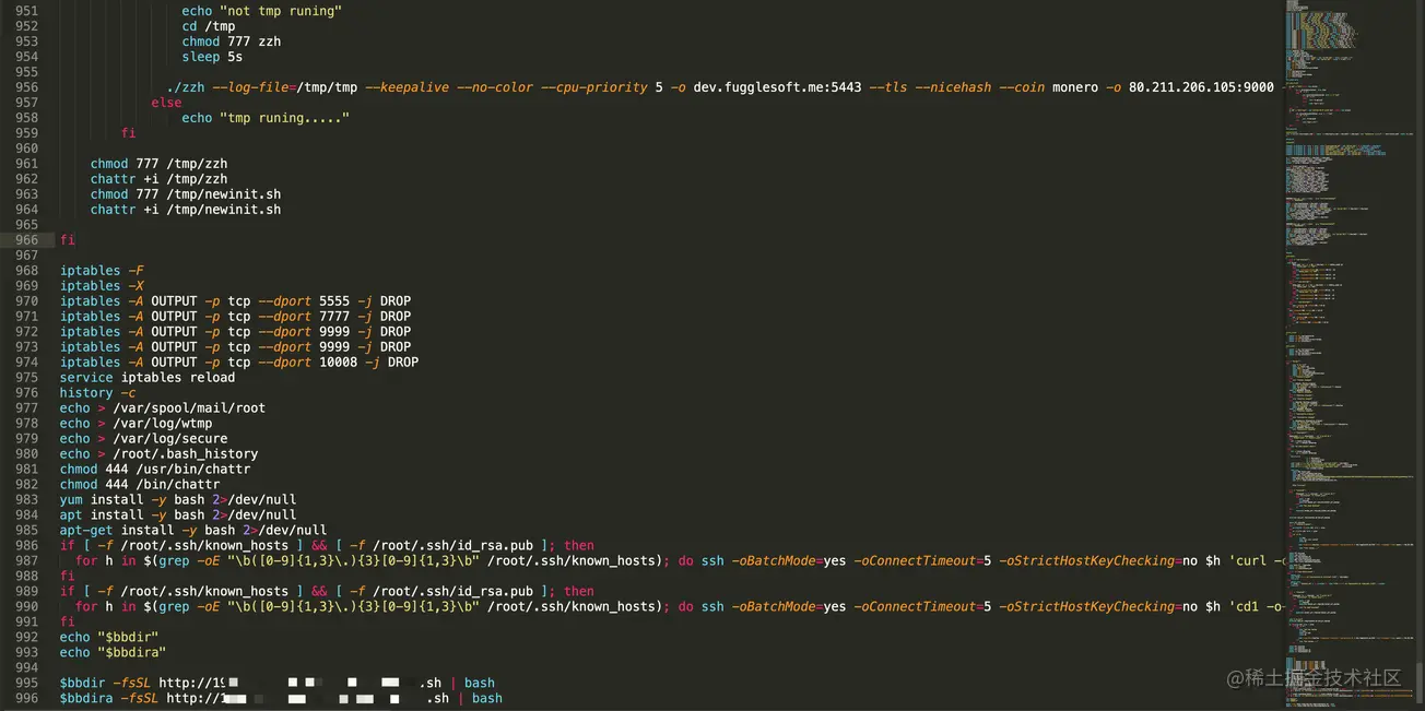 如前面所说,如果有很多重要东西和难配置的环境,你不想花时间备份和再配置一变,你可以选择根据挖矿脚本程序去一个个修复他对系统的修改。。。看着996行代码就觉得心累!