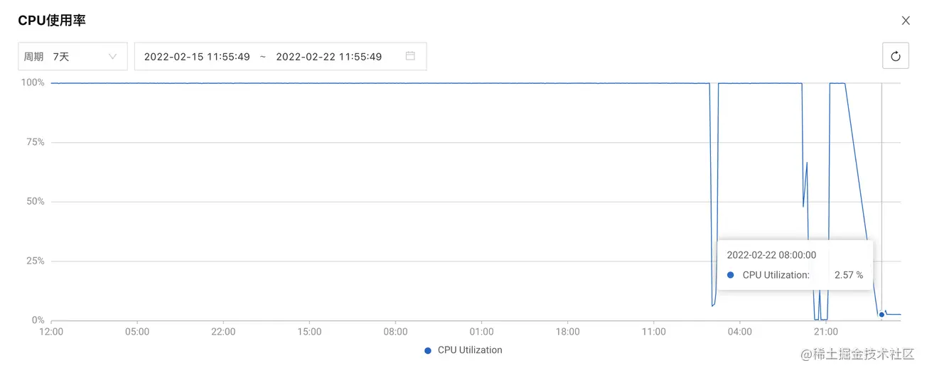 最后我们可以过一段时间后看看cpu使用情况,可以看到之前基本都是100%使用率,重置系统后,使用率变成了2.6%左右。
