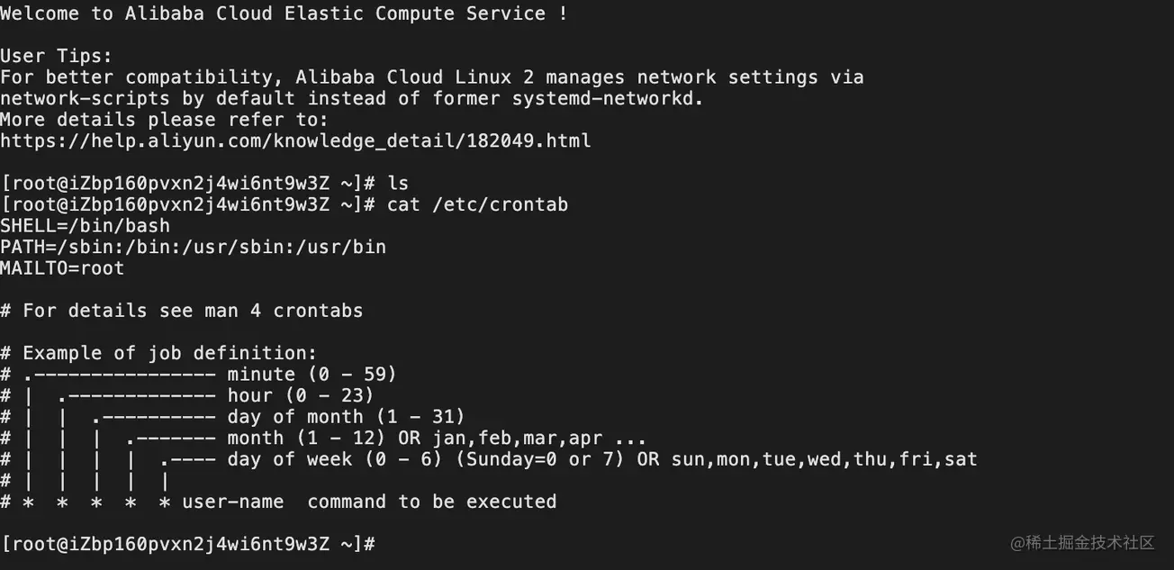 这里相关操作和设置和我们之前分享的拥有有一台服务器后,我竟然这么酷?中的介绍基本一致,通过下图,我们可以看到crontab配置是正常的了。