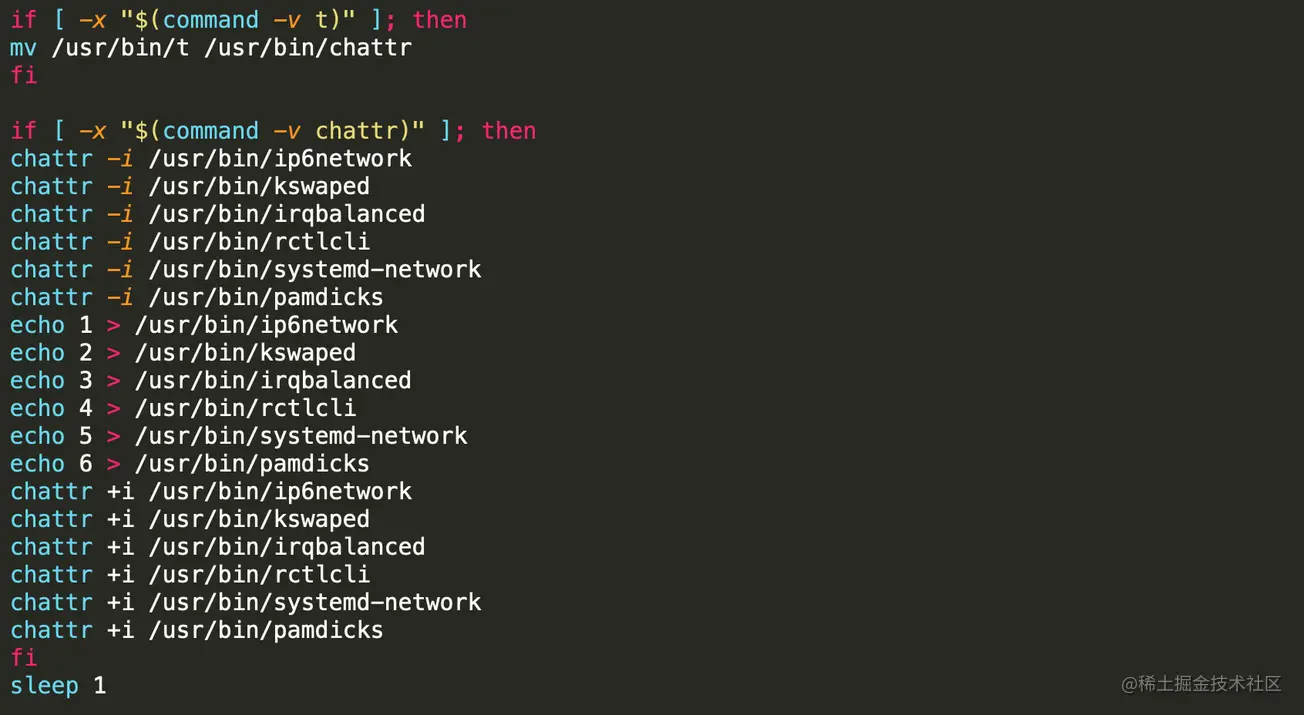 - 这里不太理解,大概在判断程序指令是否正常?如果不正常就修改文件权限?有了解的可以补充下哈~