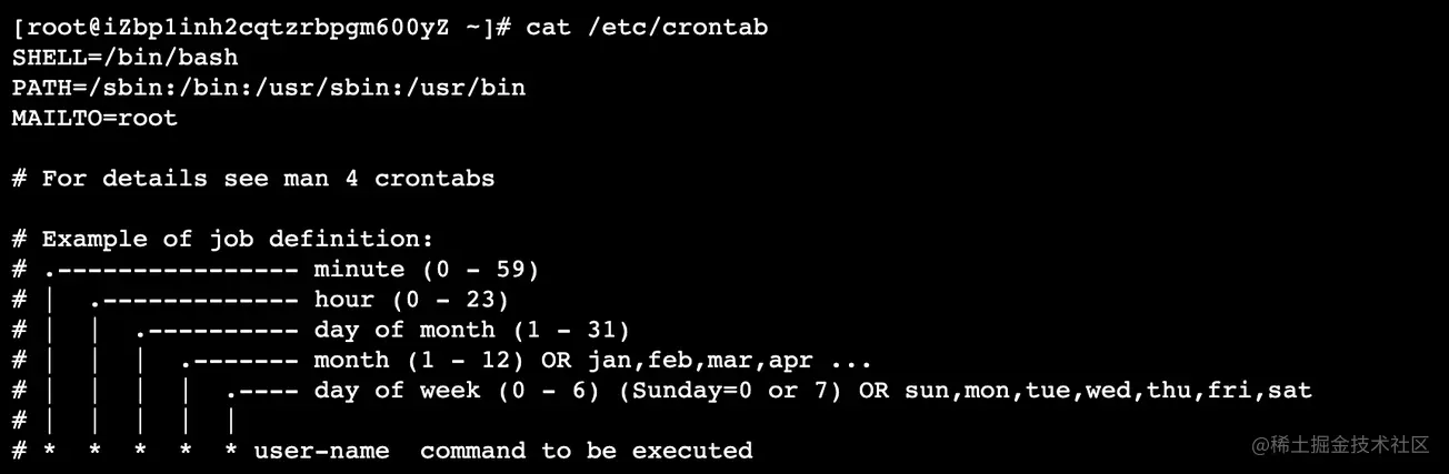 思前想后,可能是crontab配置的问题,输入下面指令看看相关配置文件~果不其然,
