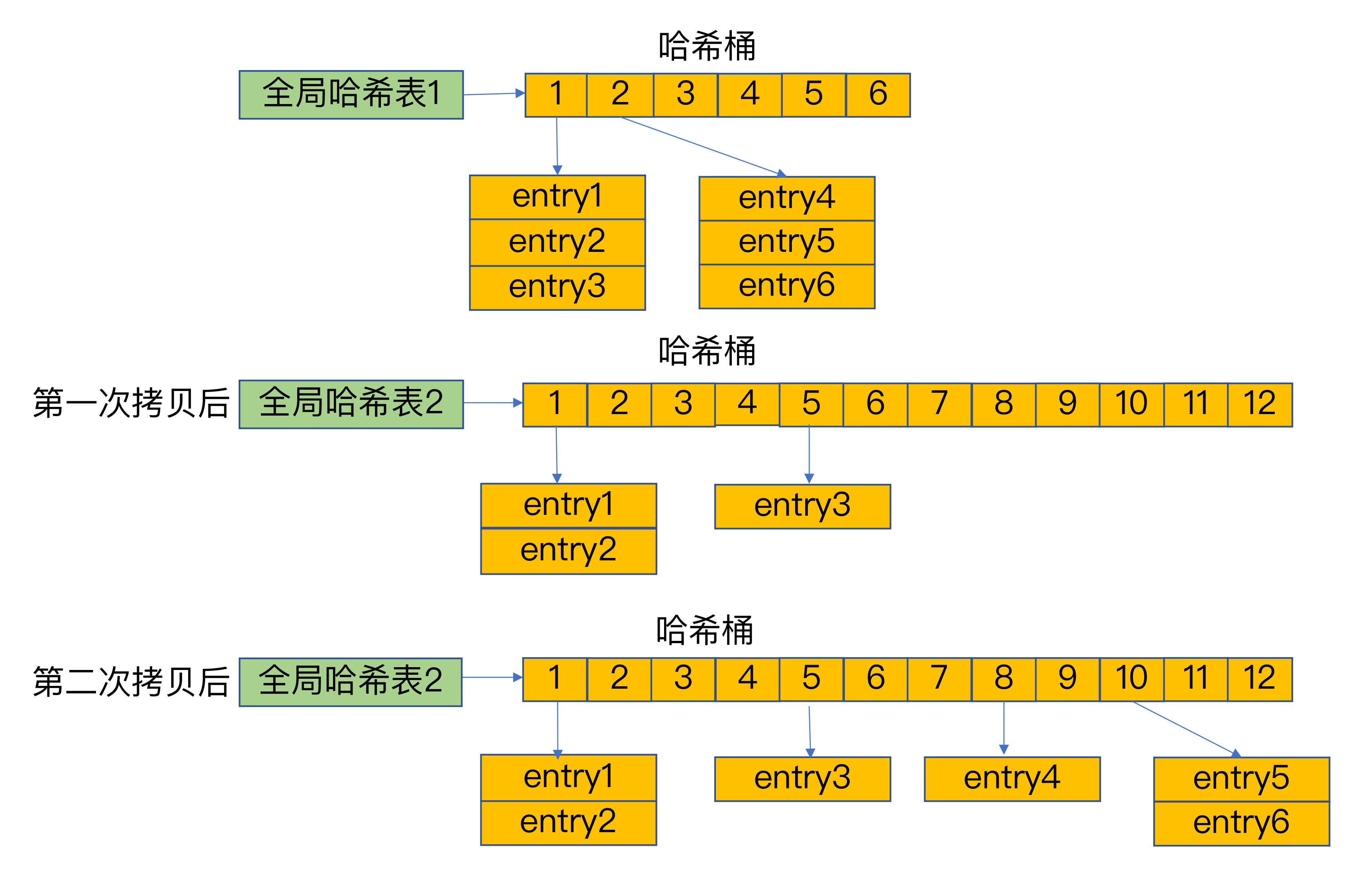 2、把哈希表1中的数据重新映射并拷贝到哈希表2中;