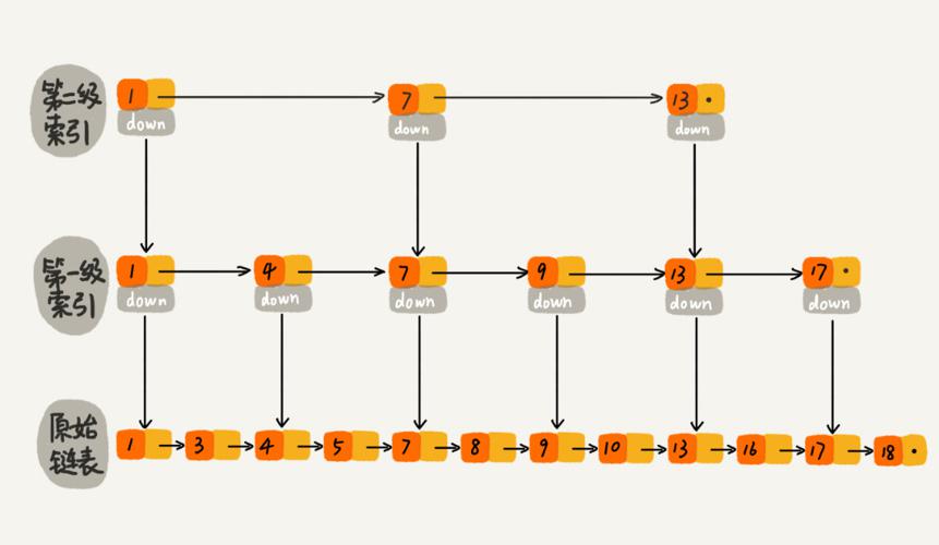 链表加多级索引的结构,就是跳表,跳表查询的时间复杂度是O(logn)。通过在每个节点中维持多个指向其他节点的指针,从而实现快速访问的节点的目的。