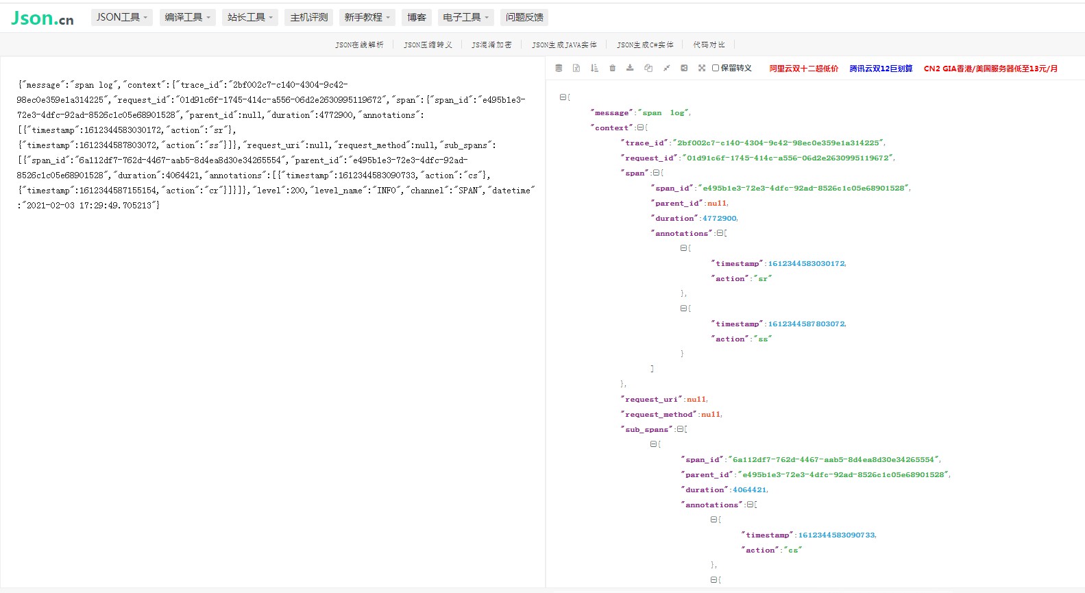 - sub_spans 节点下面,所有相关的子节点,他的parentId为上级span节点的spanId,值为e495b1e3-72e3-4dfc-92ad-8526c1c05e68901528。