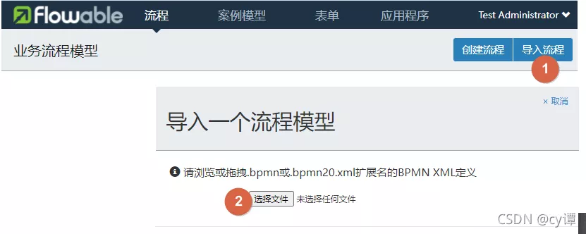 3、打开http://localhost:8080/flowable-ui 用账户:admin/test 登录