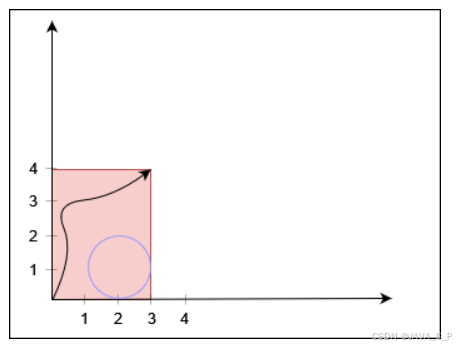输入:X = 3, Y = 4, circles = [[2,1,1]]