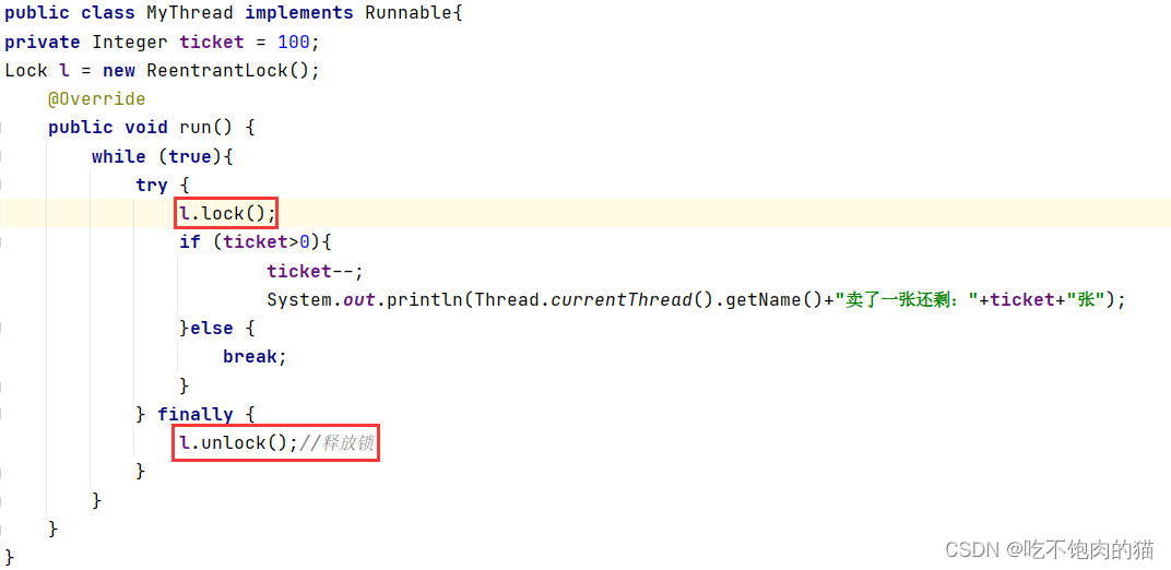 System.out.println(Thread.currentThread().getName()+"卖了一张还剩:"+ticket+"张");