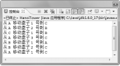 汉诺塔问题的描述如下:有3根柱子A、B和C,在A上从下往上按照从小到大的顺序放着64个圆盘,以B为中介,把盘子全部移动到C上。移动过程中,要求任意盘子的下面要么没有盘子,要么只能有比它大的盘子。本实例实现了3阶汉诺塔问题的求解,实例运行效果如图