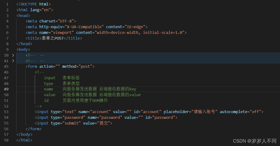 表单表示文档中的一个区域,此区域包含交互控件,将用户收集到的信息发送到 Web 服务器。