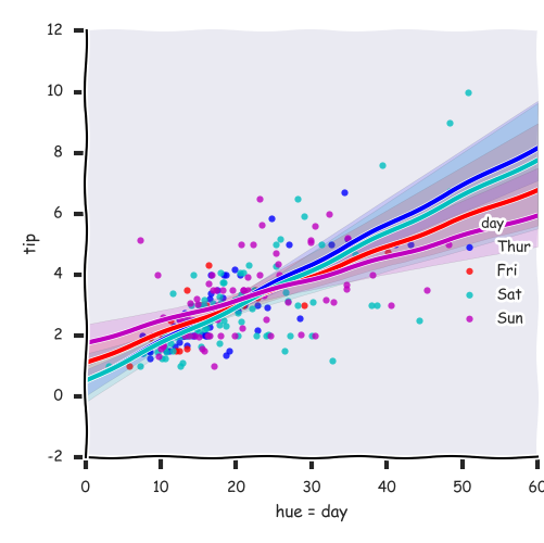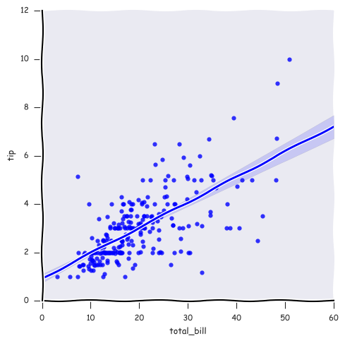 seaborn还可以做出xkcd风格的图片,还挺有意思的