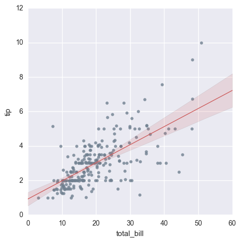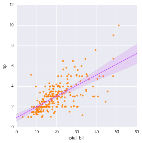 sns.lmplot(x\='total\_bill', y='tip', data=tips, ci=65).savefig('picture1')