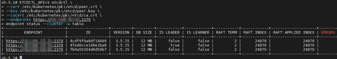 endpoint status --cluster -w table # 查看集群详细状态,包括领导节点# 其他