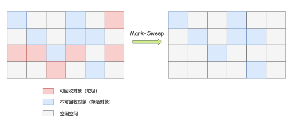 “标记-清除”(Mark-Sweep)算法是最基础的垃圾收集算法,从名称上就已经能看出,整个算法分为两个大步骤:标记 and 清除。