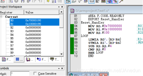 MOV R0,#0x70000000 ;R0源数据的首地址