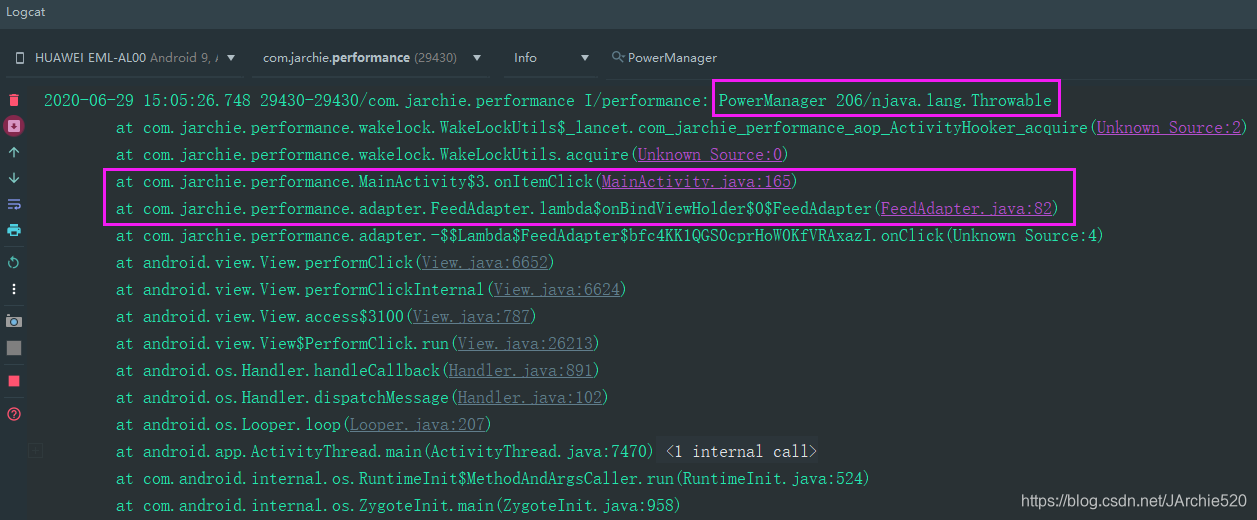 - AOP辅助统计:次数、时间(获取耗电组件的调用位置、调用堆栈、执行时间等信息)