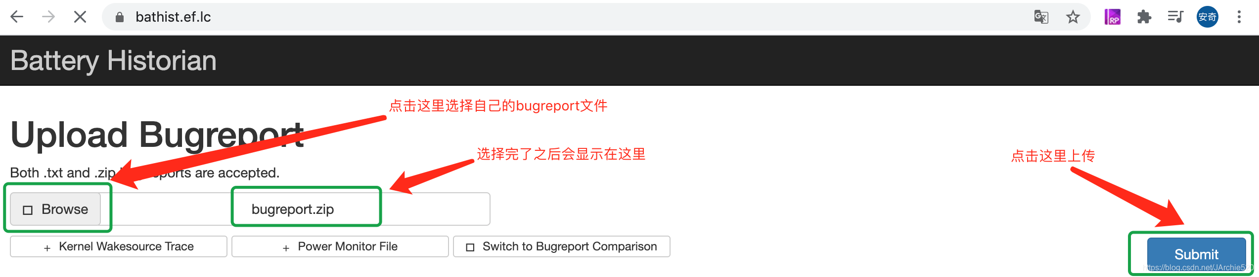 下面来使用网站进行分析,能翻墙的小伙伴可以使用这种方式,无需安装Battery Historian,直接上传即可: