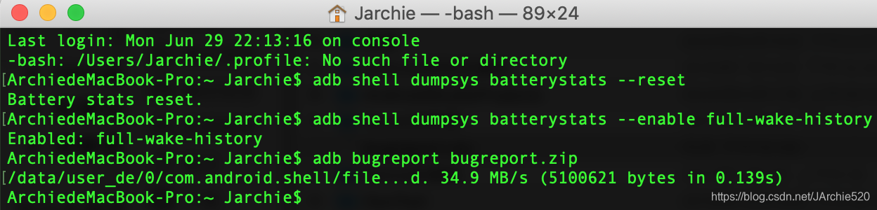 - 导出电量信息:adb bugreport bugreport.zip(这个过程可能会很慢,耐心等待)