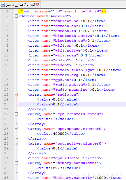 然后找到反编译完成的文件夹的res/xml文件夹下的power_profile.xml文件: