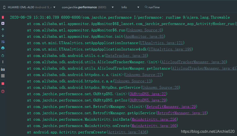 LogUtils.i("runTime "+(System.currentTimeMillis() - runTime)+"/n"+trace);
