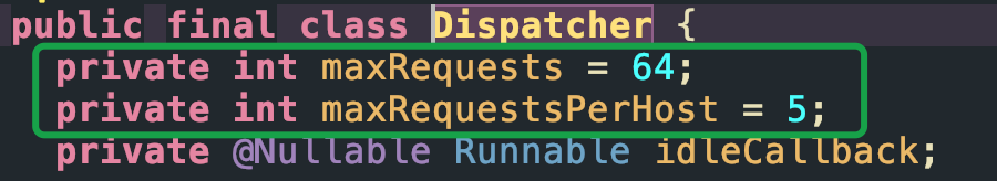 - OkHttp的请求池:当前正在执行网络请求的任务数的最大值默认是64,单个Host可以同时运行5个网络请求,这样做可以防止某个域名的请求过多其它的域名请求没有机会执行